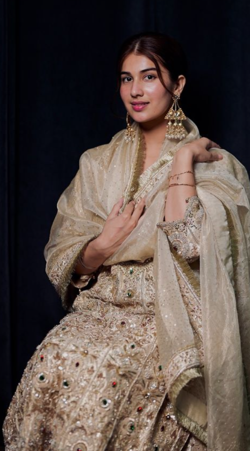 This outfit is more than just clothing; it’s a work of art. It highlights the beauty of hand embroidery and the rich cultural heritage it represents. By choosing to wear this stunning piece, Pari Pandher not only celebrates her own unique style but also pays homage to the artisans who keep these traditional crafts alive. In this golden ensemble, Pari shines brightly, reminding us of the timeless charm and beauty that come with handcrafted fashion. This look is a testament to the power of traditional techniques and the beauty they bring to modern fashion.