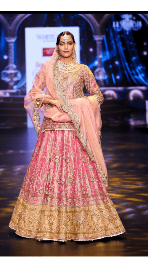 The launch of ‘RANISA’ at Bombay Times Fashion Week was a spectacle befitting its royal inspiration. The runway was transformed into a royal court, with elaborate décor and lighting that set the stage for the opulent garments to shine. As the models took to the runway, the audience was transported to a bygone era of regal elegance. Each piece in the collection tells a story of its own. From flowing lehengas adorned with intricate zari work to stately outfits with rich fabric borders, ‘RANISA’ captures the essence of royal attire. The ensembles explore Mughal-inspired designs, utilizing century-old motifs to create embroidery patterns that are both timeless and contemporary.